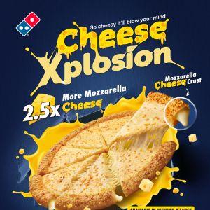 The Domino's Cheese Xplosion is back! Indulge in 2.5x more mozzarella and a signature mozzarella cheese crust. Available now from just $19.95