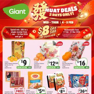 Limited time! Giant 2-Day Huat Deals (4-5 Feb 2026). Grab Mandarin Gift Boxes from $9, Tiger Beer at $36.50, and 1-for-1 Shabu Shabu. Get your $8 CNY Voucher today!