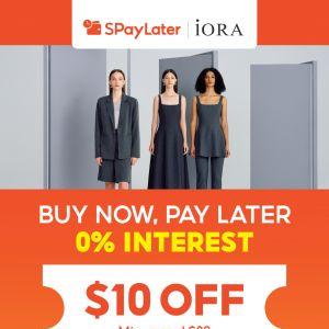 Refresh your wardrobe with the iORA SPayLater Promotion! Enjoy $10 off with a minimum spend of $80 in-store and 0% interest instalments from 1 June to 31 August 2025. Limited redemptions, T&Cs apply.