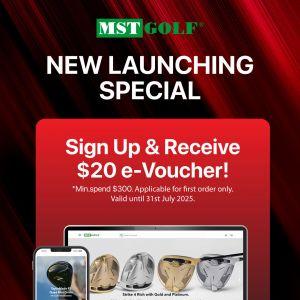 Celebrate the new MST Golf Singapore website launch! Sign up and receive a $20 e-voucher with a minimum spend of $300 on your first order. Offer valid until 31 July 2025. Shop the latest golf gear and enjoy exclusive savings online.