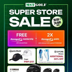 Shop the MST Golf Super Store Sale from 28 July to 24 August 2025! Enjoy double ilovegolf points, free membership, exclusive discounts on top golf brands, and stand a chance to win golf flights at Sentosa, Tanah Merah, and Orchid Country Clubs. Visit all MST Golf outlets for the biggest golf deals in Singapore!